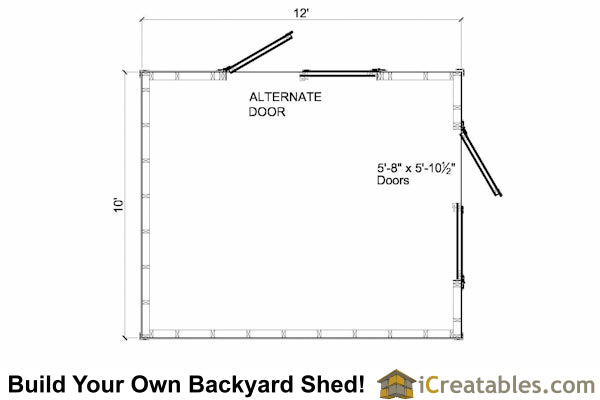 Door: The 10x12 shed uses two 3'-9" x 5'-9 1/2" doors which are built using sandwich construction for strength and durability. These doors can be substituted with a pre-hung, pre built residential house doors.