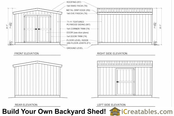 Alternalte Options: The shed plans have alternate drawings for the door on the end or sides.