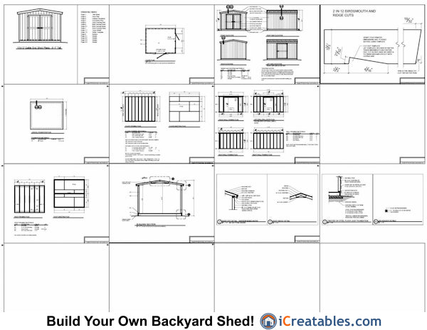 Materials List:The 10x12 short backyard shed plans come with a complete materials list that is broken down by parts of the shed.
