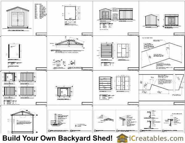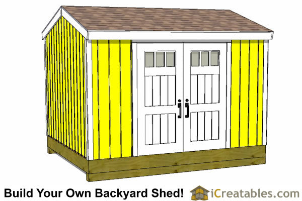 Wall Height: The shed wall height is 7'-7". This wall height will accomodate the door that is outlined in the shed plans and a pre-built, pre-hung factory built door.
