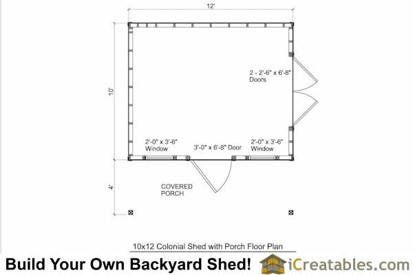 Alternate Options: The 10x12 Colonial shed plans can be built with either factory built doors or you can build the doors using the door plans included with the shed plans. You may also remove the double doors and install another window.