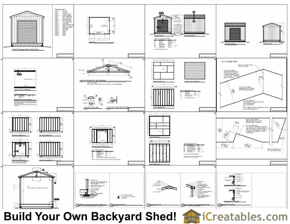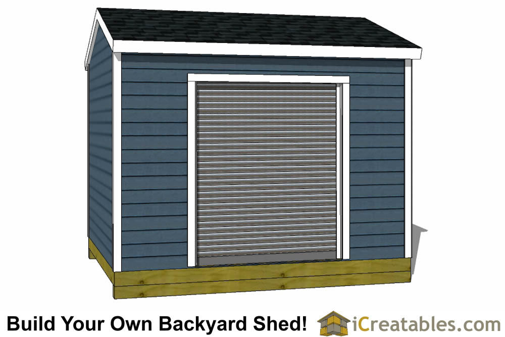 Door: The shed is designed to use a 6' wide by 7' tall overhead roll up door. An overhead multi panel door can also be used.