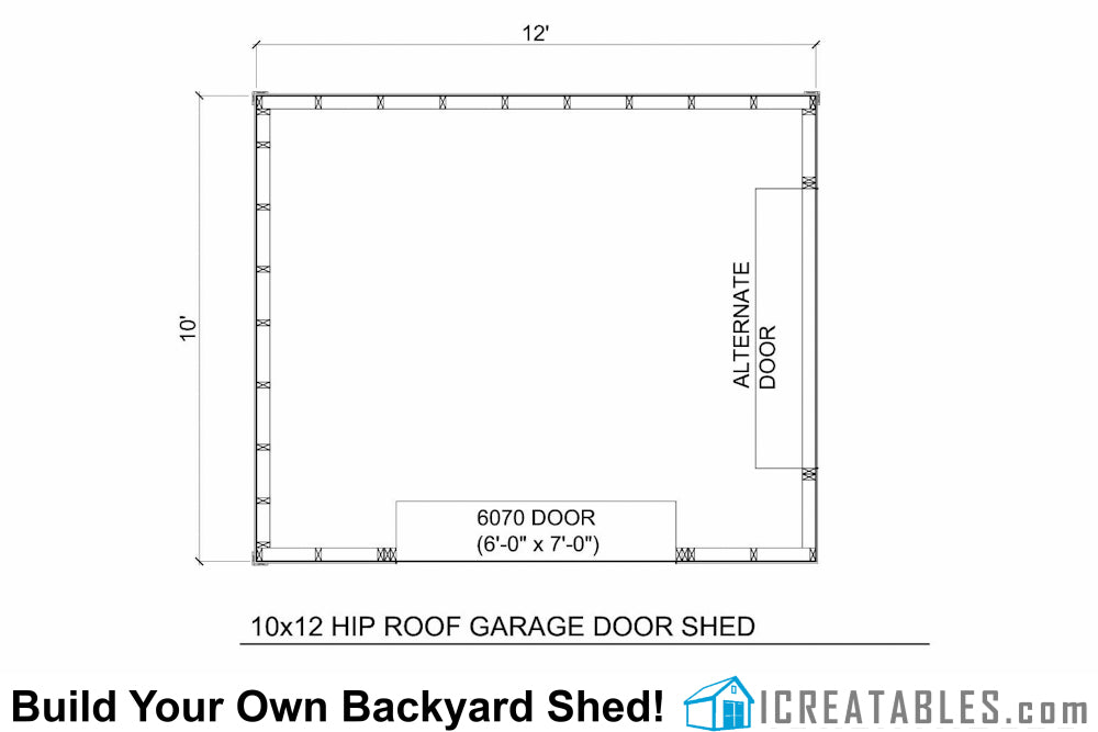 Door: The shed is designed to use a 6' wide by 7' tall overhead roll up door. An overhead multi panel door can also be used.