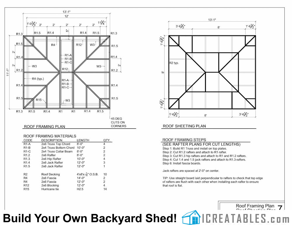 Options: The framed shed floor can be constructed using O.S.B. sheeting or 2x6 boards.