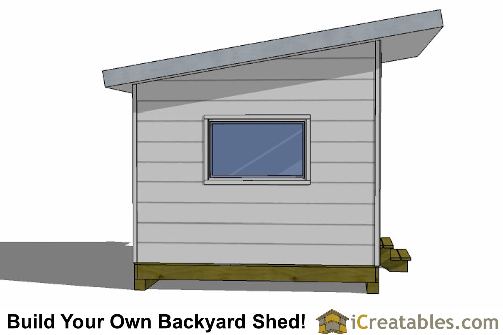 Walls: 2x4 framing at 16" on center, 7/16" O.S.B. sheeting that allows most sidings to be applied. The lower shed wall height is 7'-7"
