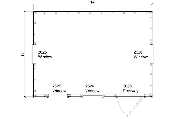 Windows: The 4 windows are 2626 size (2'-6" x 2'-6") and can open either by awning or casement movement. Or you may remove the windows to accomodate your specific needs. Windows are standard windows that can be purchased from any window supplier.