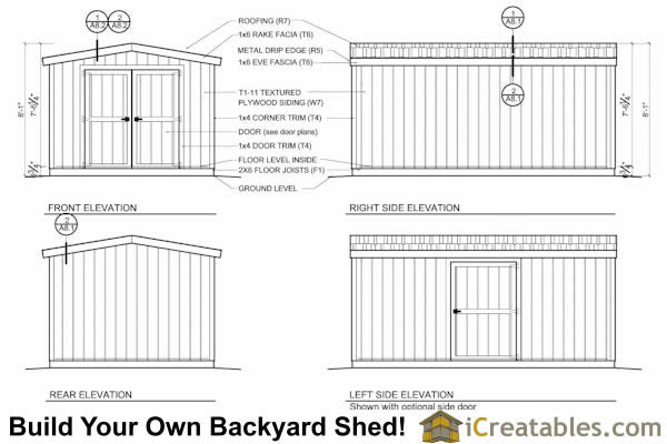 Alternate Options: The shed plans have alternate drawings for the door on the end or sides.