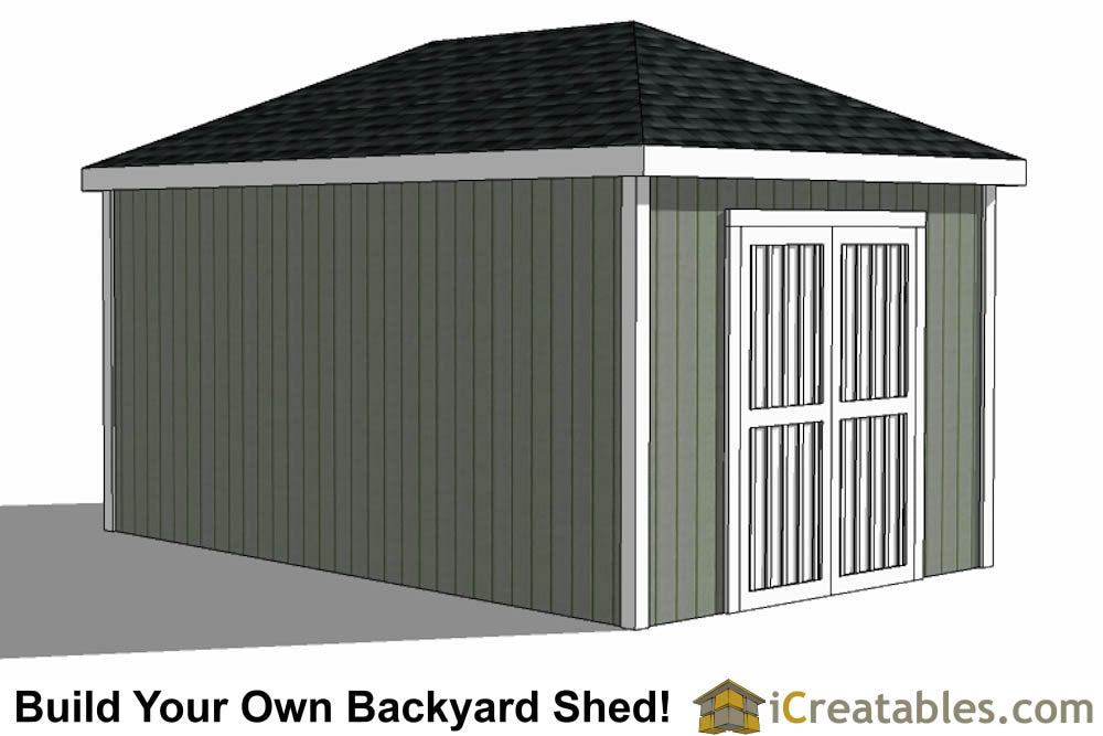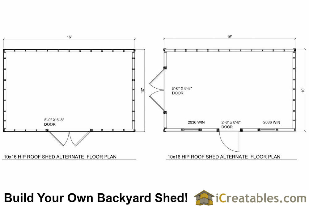 - Door: The end double utility door is 5' wide and 6'-8" tall. The front door is 2'6" x 6'-8" tall. The plans come with plans for home made doors or you can purchase pre-hung doors.