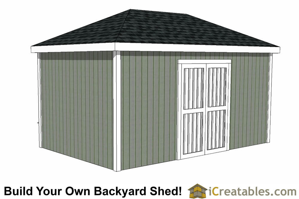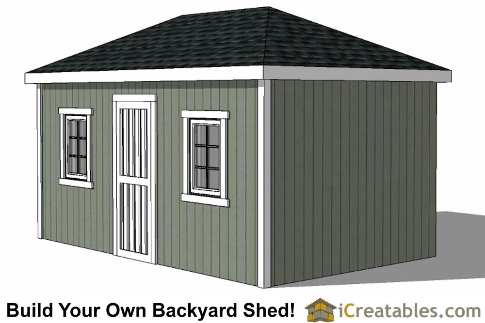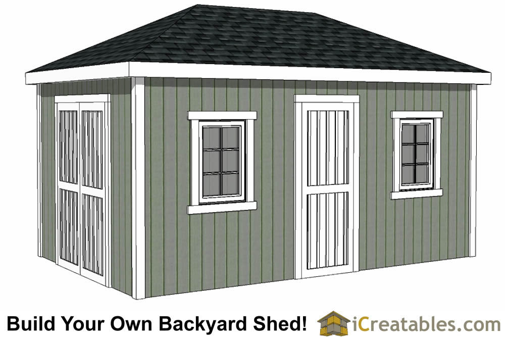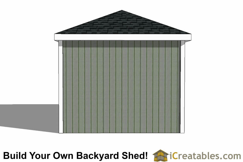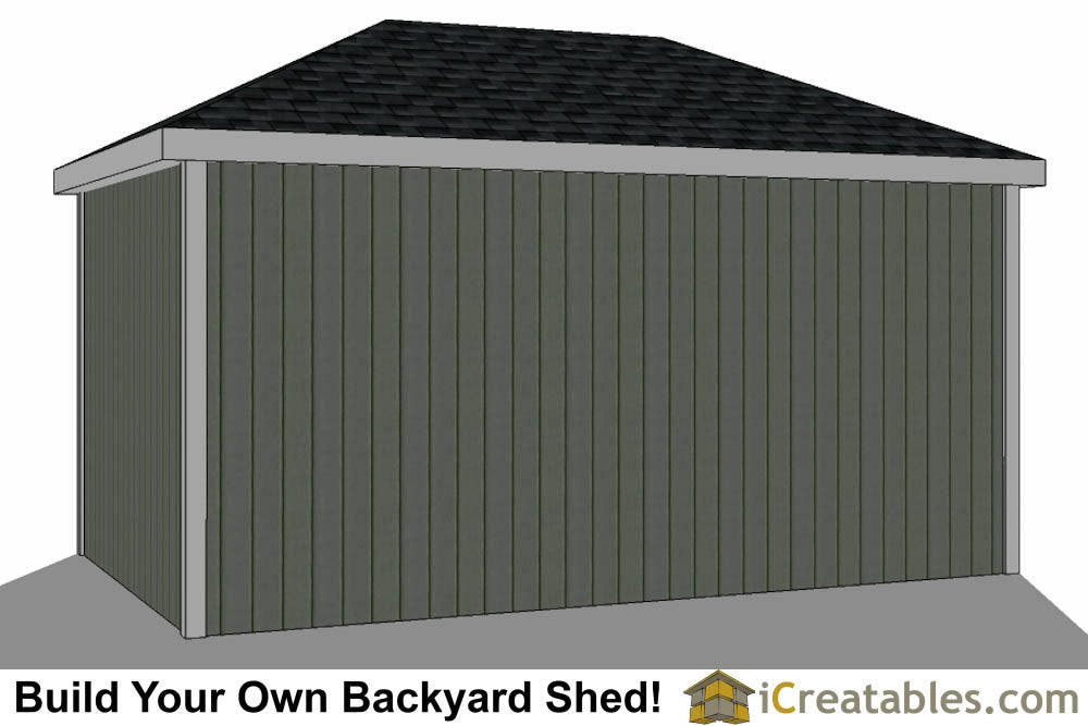 - Siding: Rough plywood siding with 1x2 battens to give the shed an authentic board and batten look. Other sidings may be used.