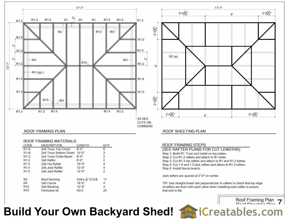 - Roof: The roof is framed using 2x6 rafters. The pitch is 6/12.