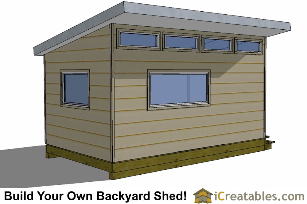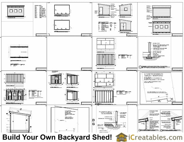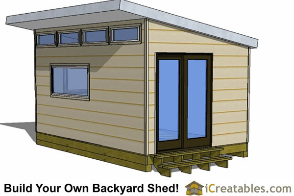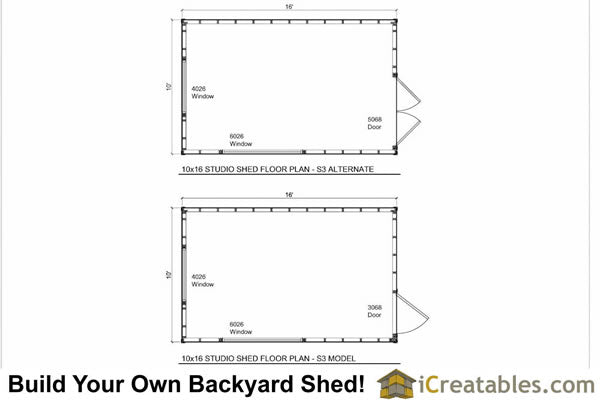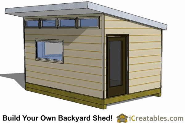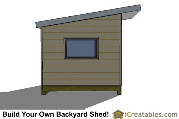 Walls: 2x4 framing at 16" on center, 7/16" O.S.B. sheeting that allows most sidings to be applied. The lower shed wall height is 7'-7"