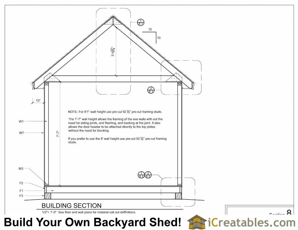 - Wall Height: The shed wall height is 7'-7" and you can use 92 5/8" framing studs which make an 8'-1" wall if you want a taller wall.