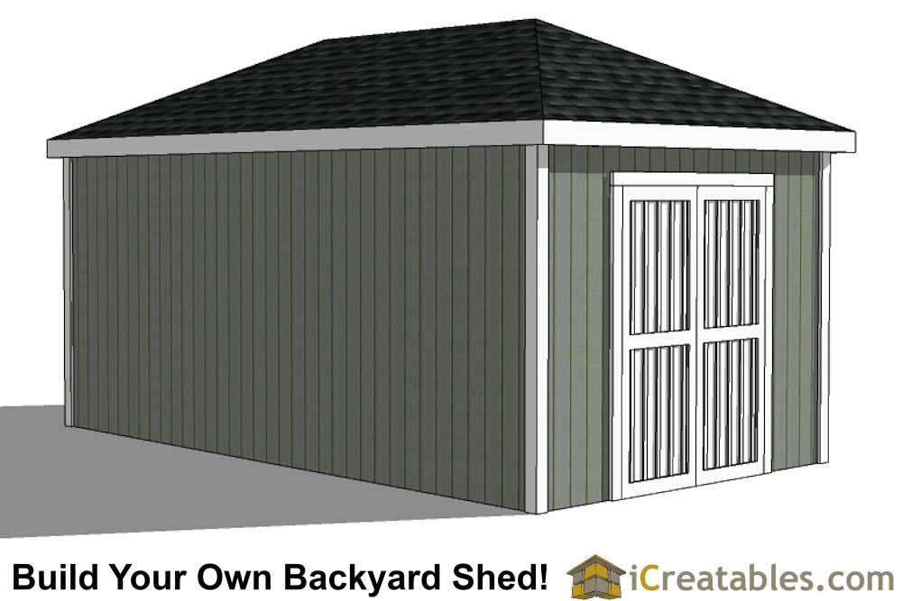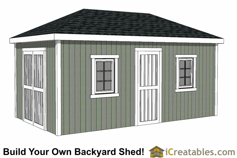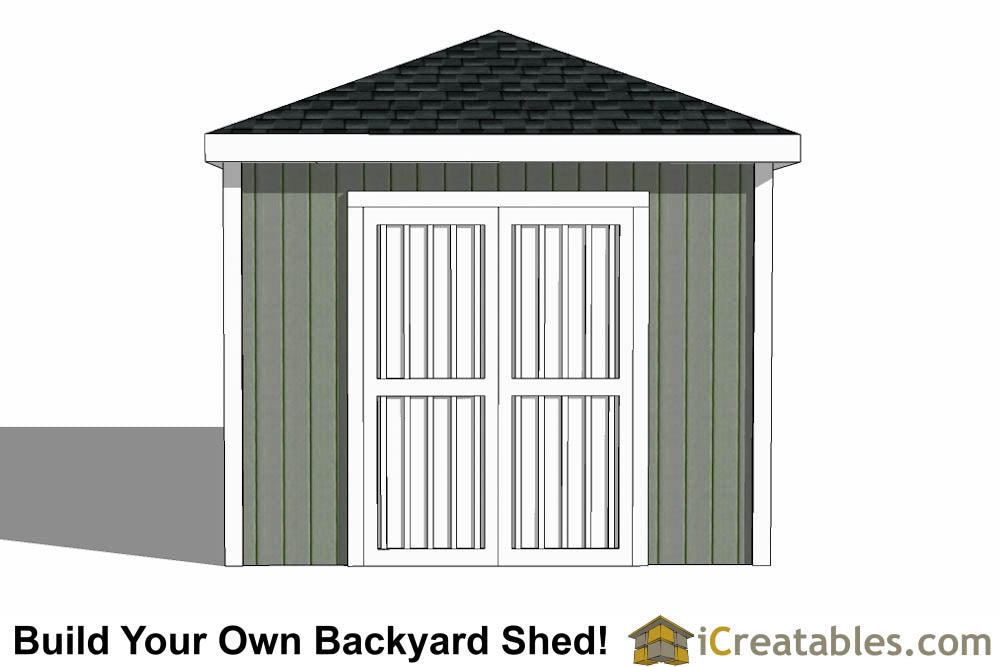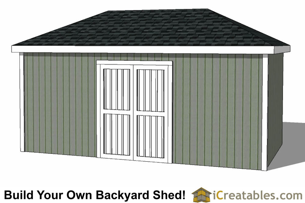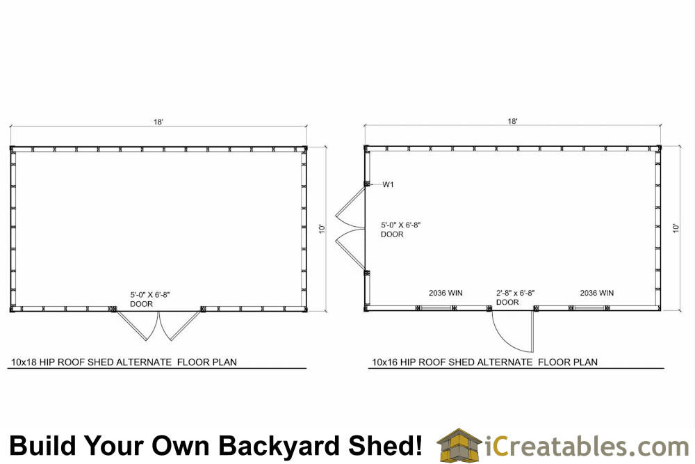 - Door: The end double utility door is 5' wide and 6'-8" tall. The front door is 2'6" x 6'-8" tall. The plans come with plans for home made doors or you can purchase pre-hung doors.