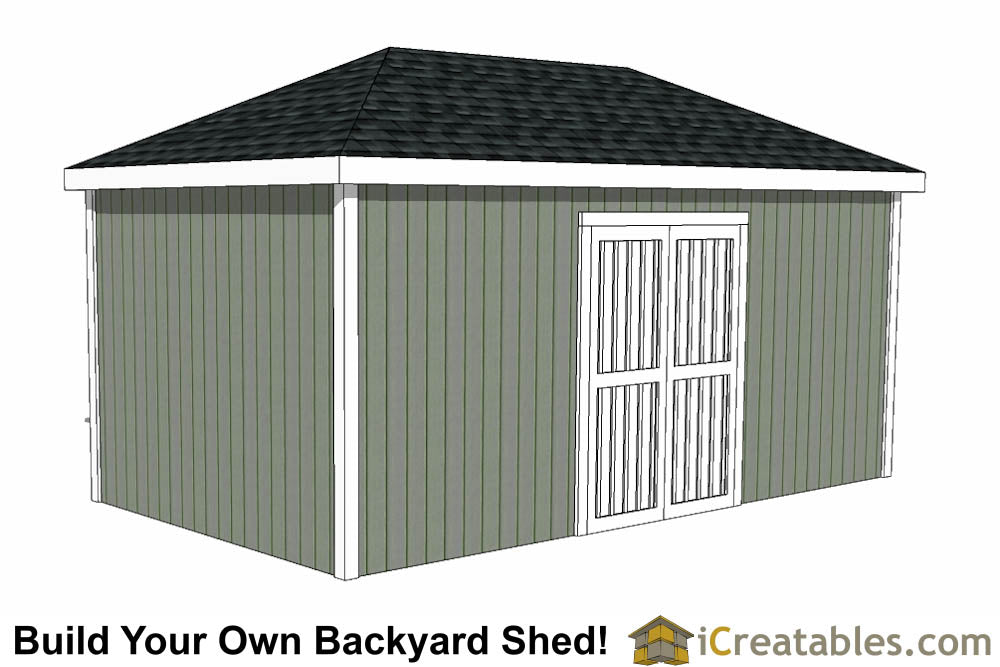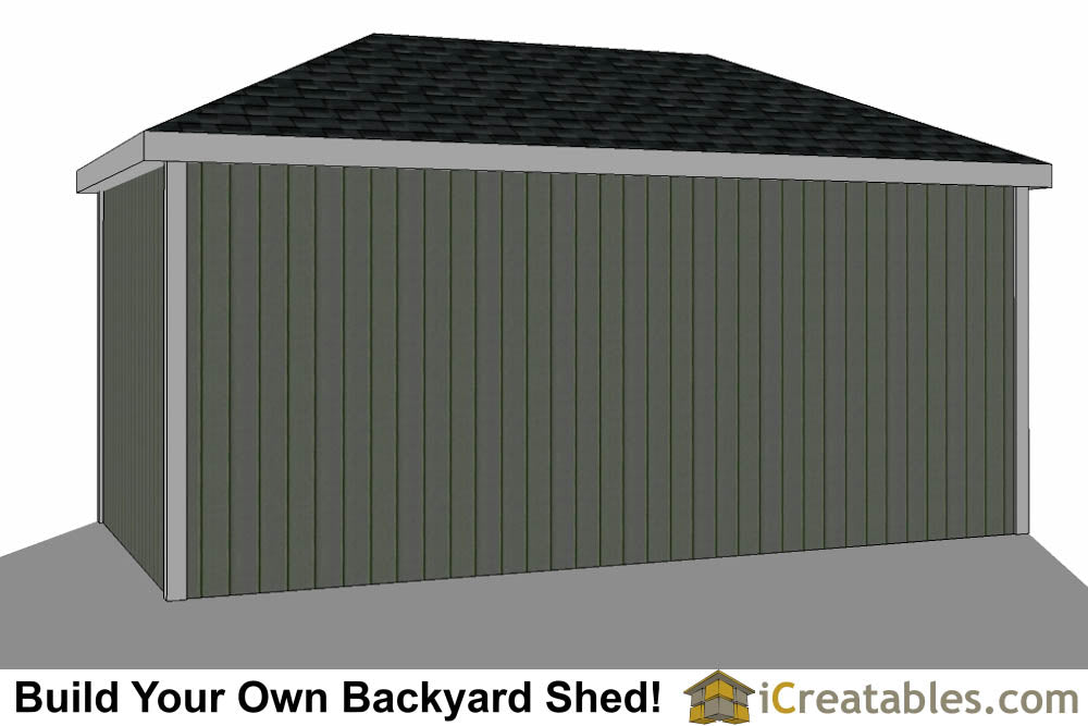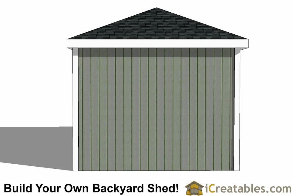- Siding: Rough plywood siding with 1x2 battens to give the shed an authentic board and batten look. Other sidings may be used.