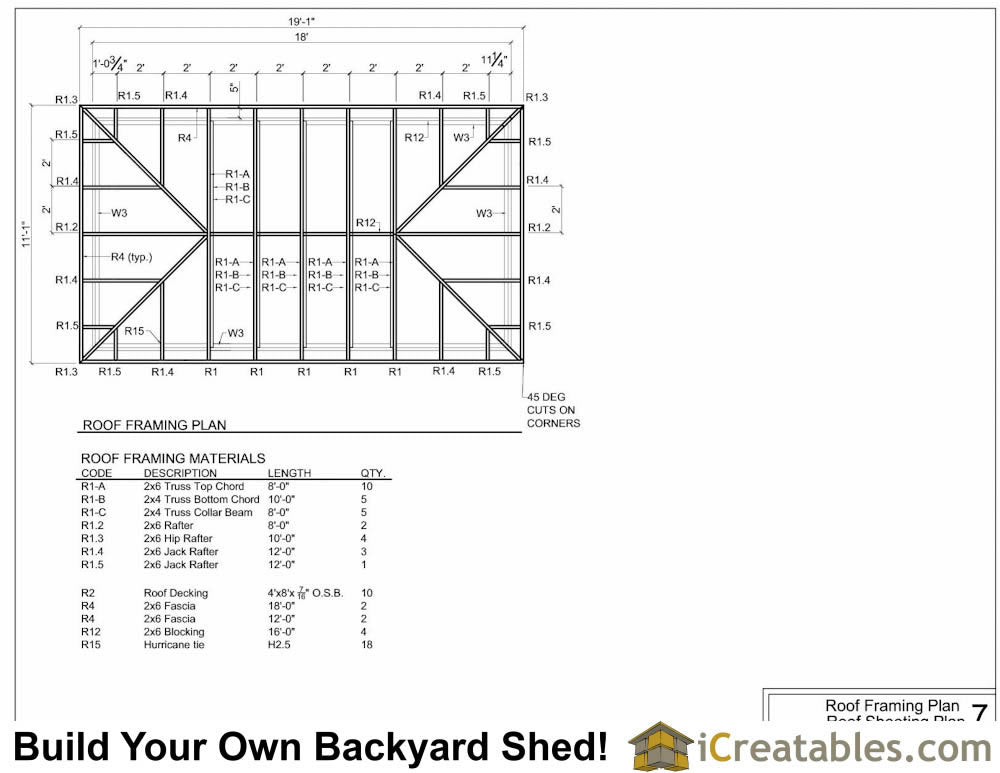 - Roof: The roof is framed using 2x6 rafters. The pitch is 6/12.