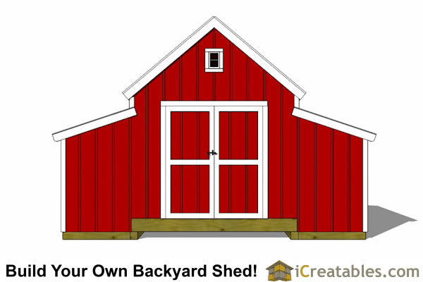 Doors: The 10x18 barn shed has a double door that makes a 6'-0" x 6'-8" opening. You can either build the doors using the included door plans or purchase factory built pre-hung doors.