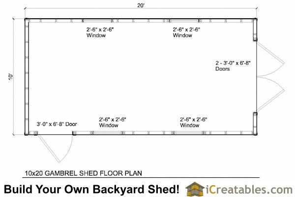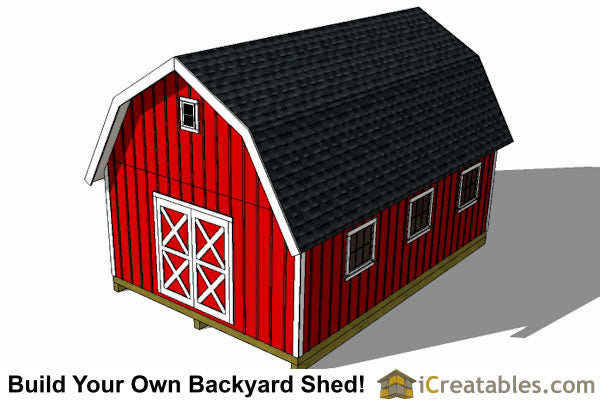 Alternalte Options: The 10x20 gambrel barn shed plans can be built with either factory built doors or you can build the doors using the door plans included with the shed plans.