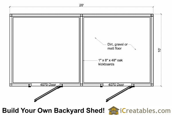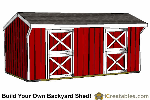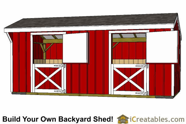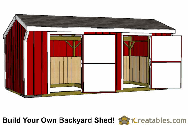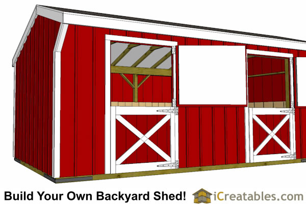Foundation: The 2 horse barn plans are built on 6x6 wood skids so the shed has a open floor and can easily be placed on the ground or a prepared gravel base. The wood skids also allow the shed to be dragged on the field