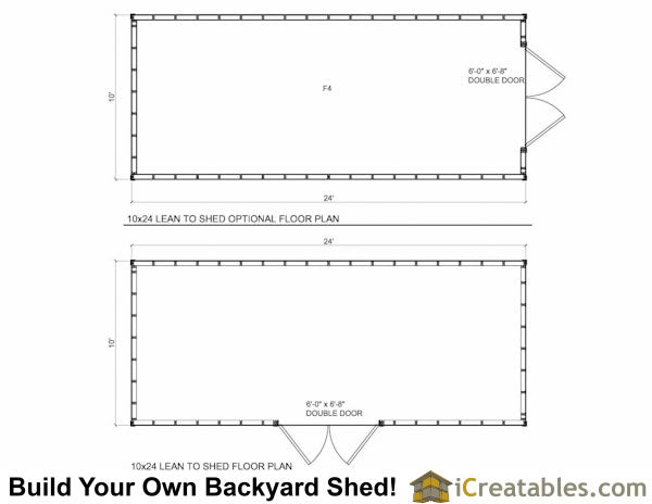 Alternate Options: The 10x24 lean to shed plans can be built with either factory built doors or you can build the doors using the door plans included with the shed plans.