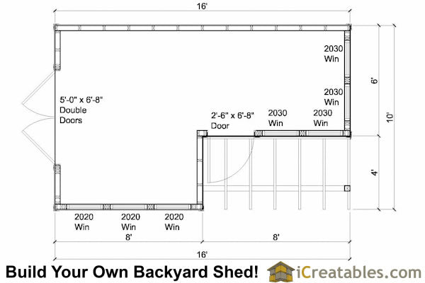 Doors: Our garden shed gives you the option of building your doors or purchasing factory built pre hung doors. The single door is a 2668 door and the double doors are a 5068 set of doors.