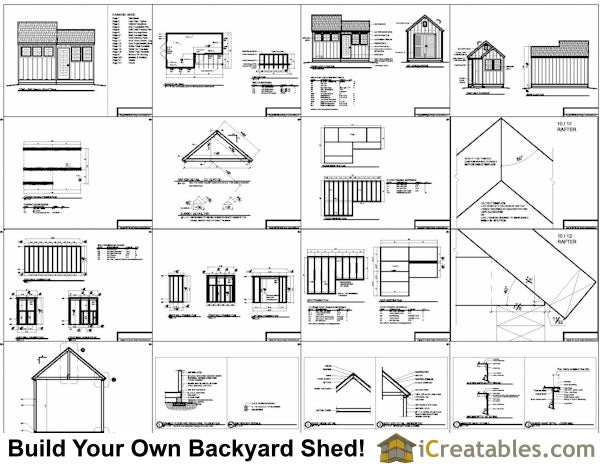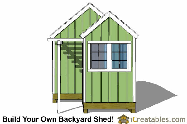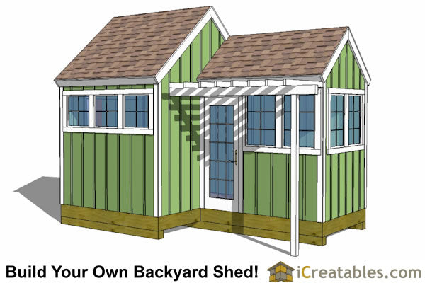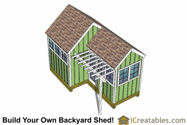 Roof: The roof is framed using 2x4's to build the trusses. It is sheeted with 1/2" O.S.B. The plans give you the dimensions and cut angles so you can build the roof rafters on the ground and then put them up on the top plates.
