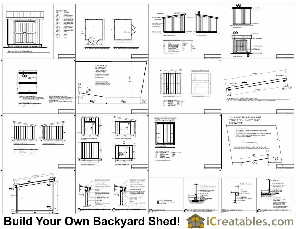 - Materials List:The 12x10 Lean To shed plans come with a complete materials list that is broken down by parts of the shed.