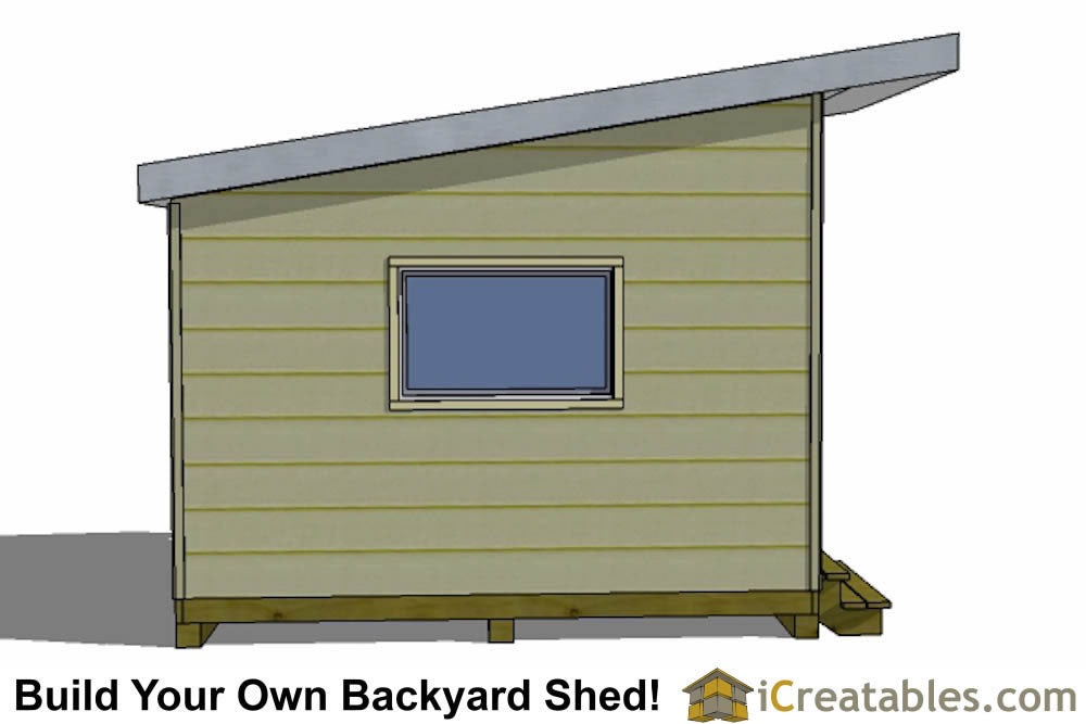 - Walls: 2x4 framing at 16" on center, 7/16" O.S.B. sheeting that allows most sidings to be applied. The lower shed wall height is 7'-7"