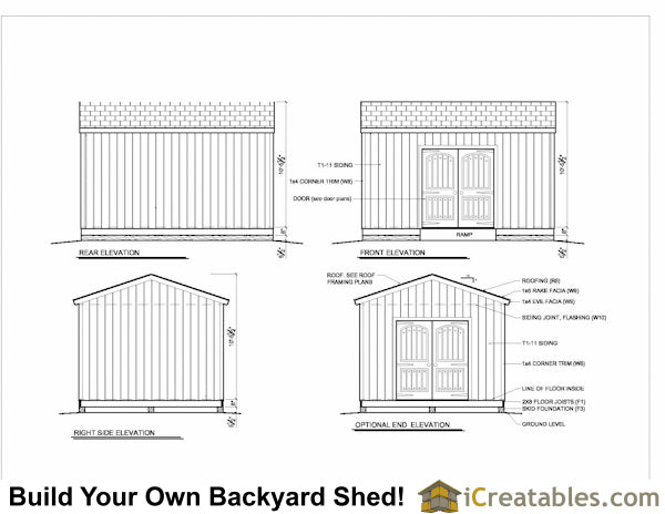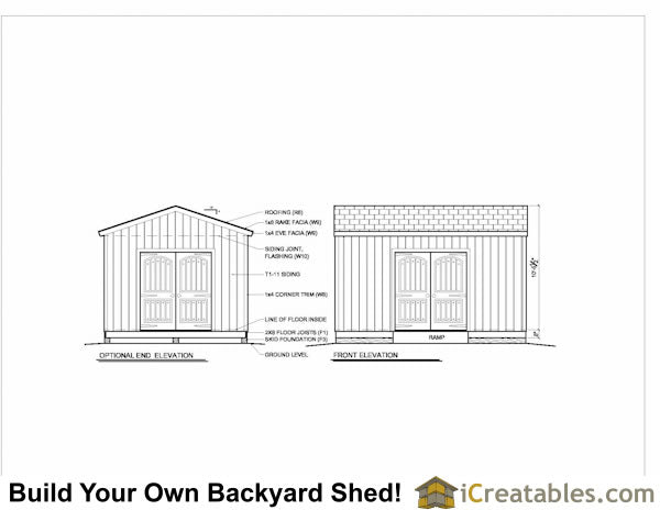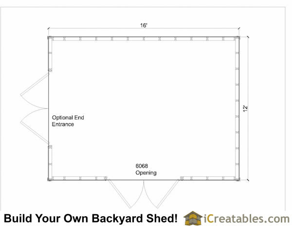 - Alternalte Options: There are two door options to build the 12x16 shed with the double doors on the gable end or the eve side.