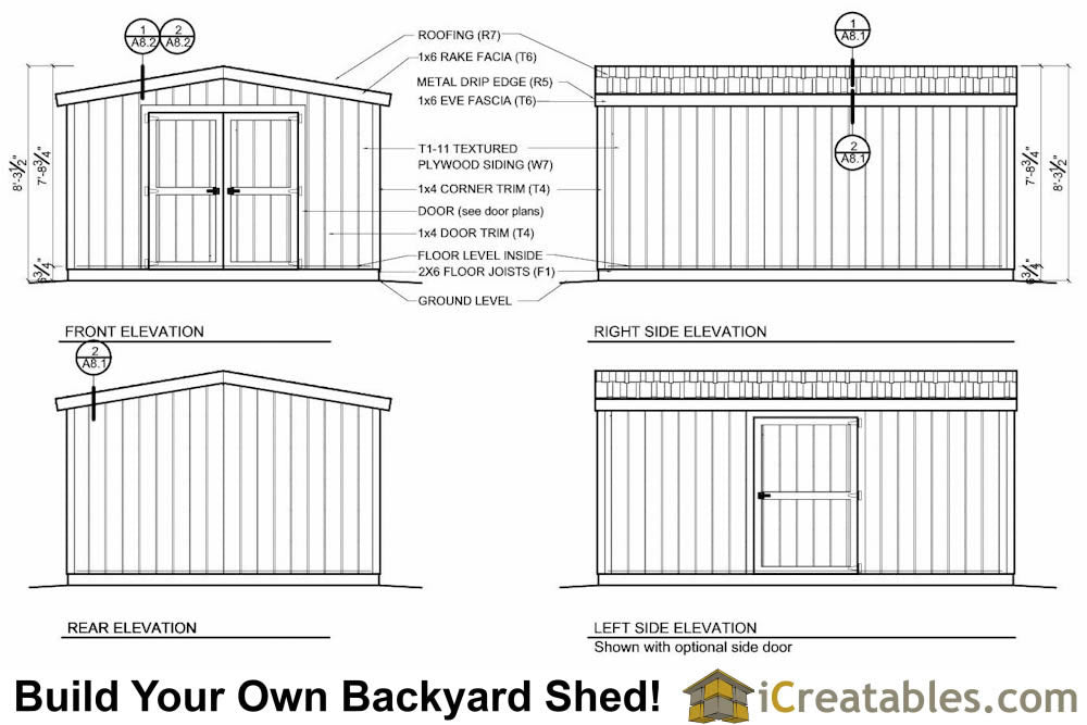 12x16-B8 Backyard 8 Foot Shed Plans Emailed