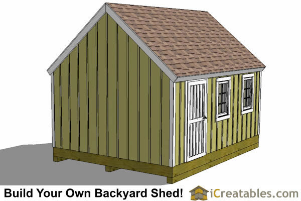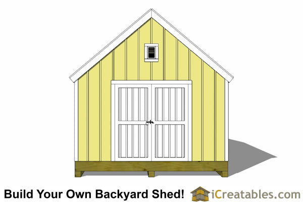 - Siding: Rough plywood siding with 1x2 battens to give the shed an authentic board and batten look. Other sidings may be used.