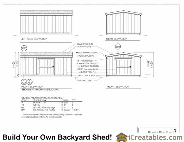 8x12 6 Foot Tall Backyard Shed Plans Include The Following: