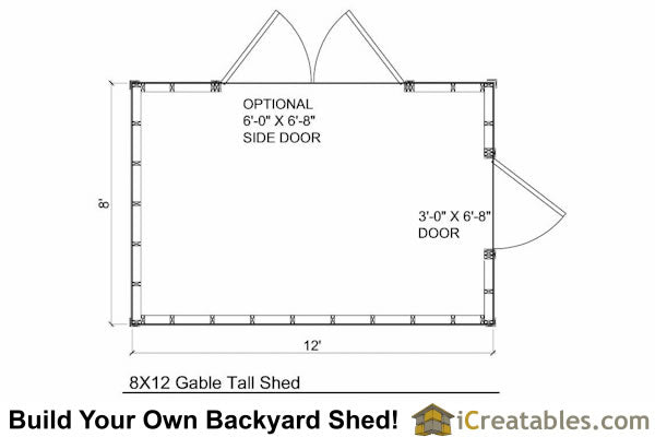 - Alternalte Options: Drawings for the door on the end or sides. The wall height can be built at 7'-7" (the minimum for a pre built door), or 8'-1" (the height of framing studs). Use the plans for a home built door or purchase a factory built door.