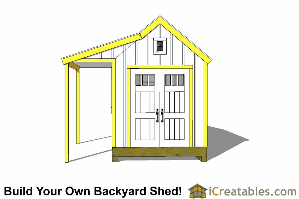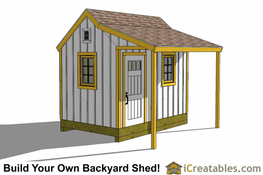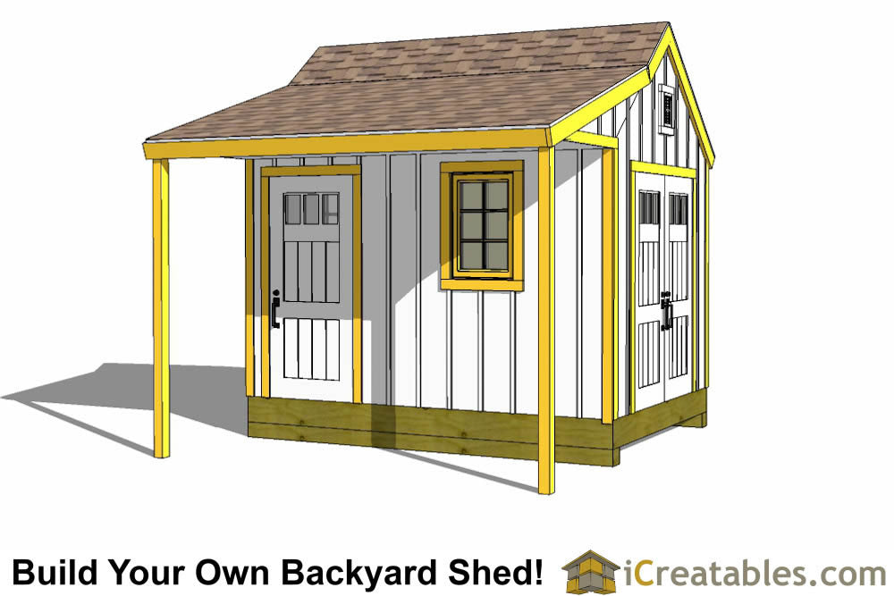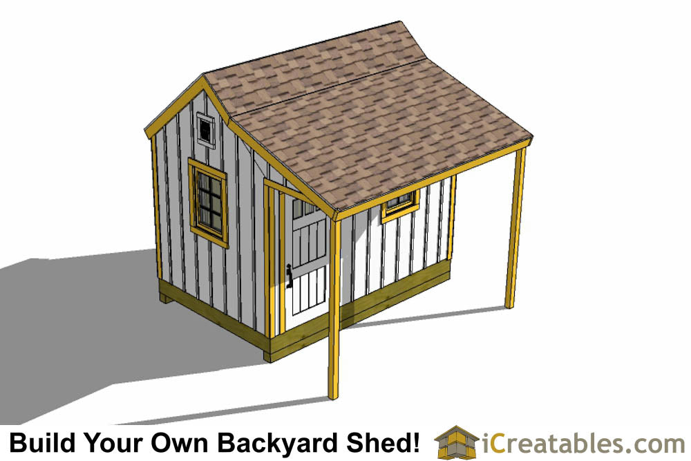 - Roof Pitch: 10/12, this means that for every 10 inches of rise there is 12 inches of run horizontally. The roof pitch of the shed covered porch is 4/12.