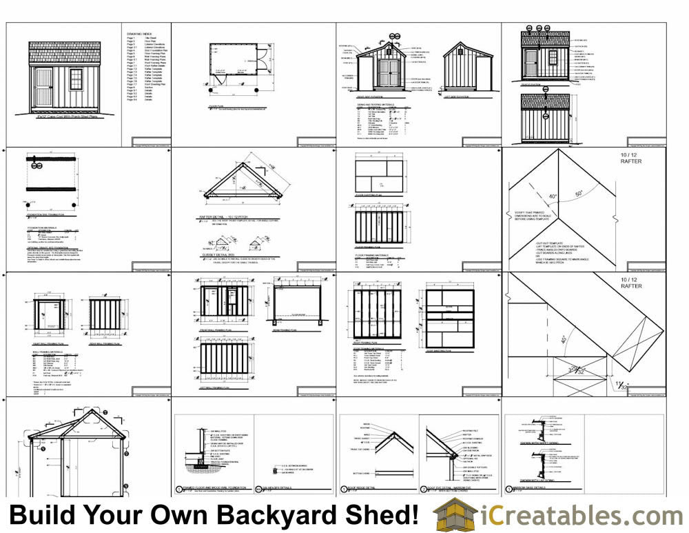 - Materials List:The 8x12 Cape Cod shed plans with a porch come with a complete materials list that is broken down by parts of the shed.