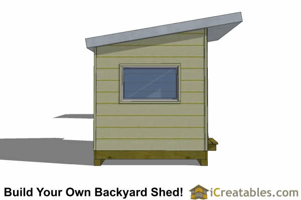 - Walls: 2x4 framing at 16" on center, 7/16" O.S.B. sheeting that allows most sidings to be applied. The lower shed wall height is 7'-5"