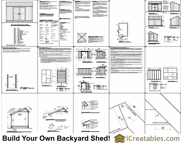 The 8x12 salt box shed plans include: